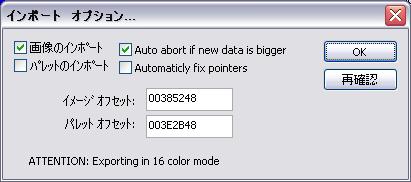 [ROMに保存]をクリック。さらに出てくる「インポート オプション」で、